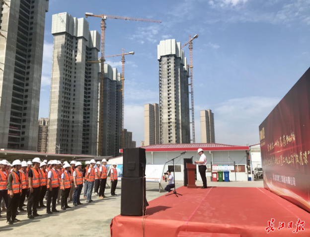 6月8日上午,位于經(jīng)開大道旁的車都?春臺里項目工地80余名一線建設(shè)者在辦公區(qū)上了一堂“微黨課”。即日起,黨史教育巡回展將在武漢建工集團(tuán)市內(nèi)12個重點工地巡回展出,持續(xù)至10月。