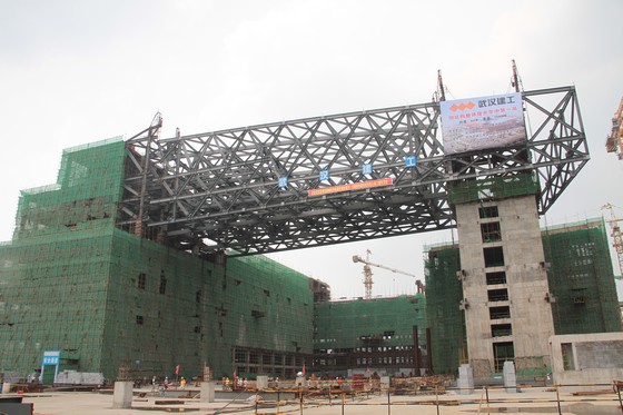 昨日,由武漢建工集團承建的武漢市行政服務(wù)中心(市民之家)工程成功地進行了鋼結(jié)構(gòu)連廊的整體提升施工,將這個寵然大物提升到33米的安裝位置。該鋼結(jié)構(gòu)的大跨度、大噸位、大體積整體提升創(chuàng)湖北省乃至中南地區(qū)鋼結(jié)構(gòu)吊裝施工首例,堪稱“華中第一提”。據(jù)悉,新建的武漢市行政服務(wù)中心下個月結(jié)構(gòu)封頂,明年5月竣工。