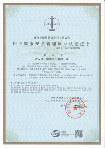 職業(yè)健康安全管理體系認(rèn)證證書